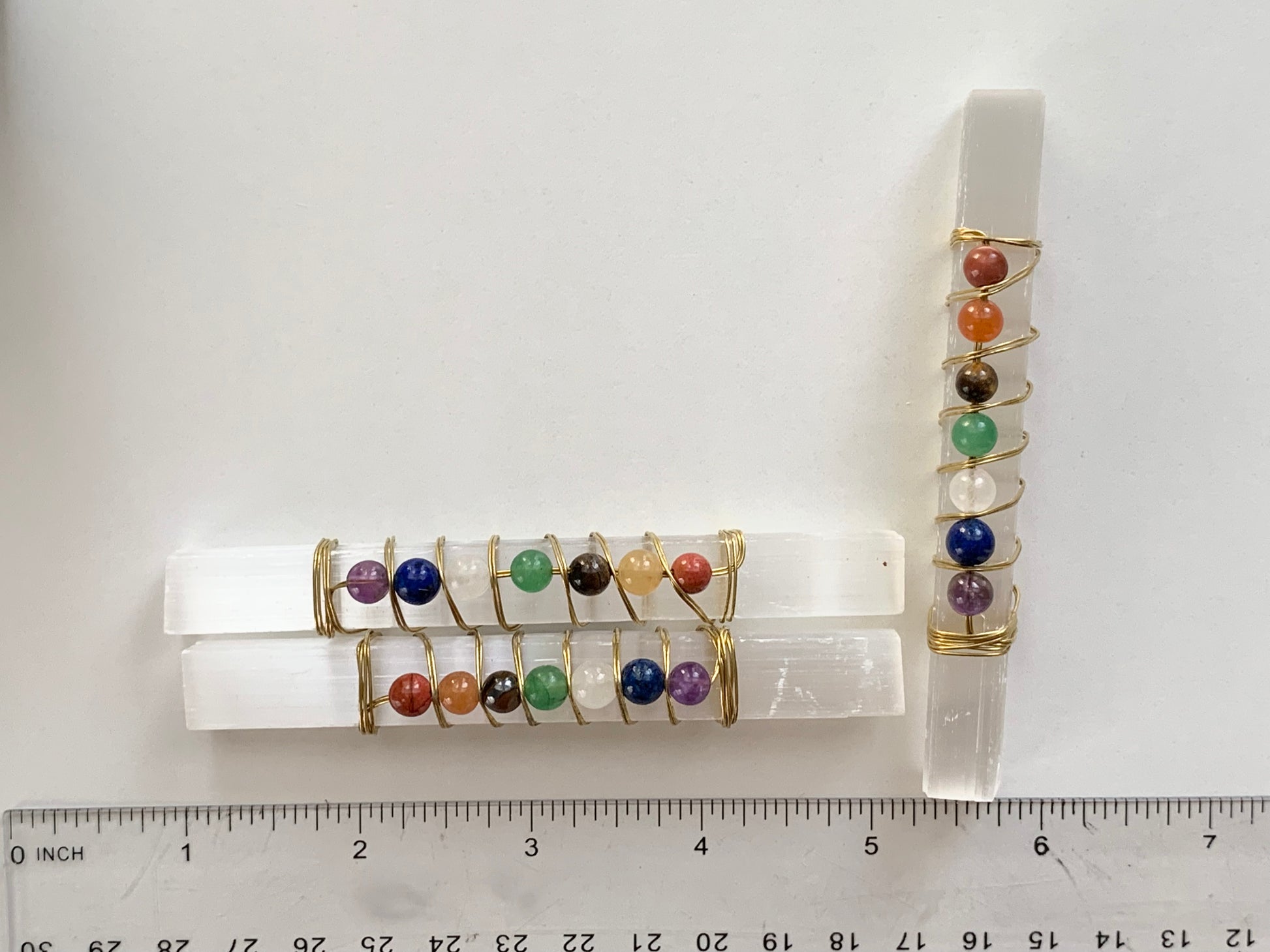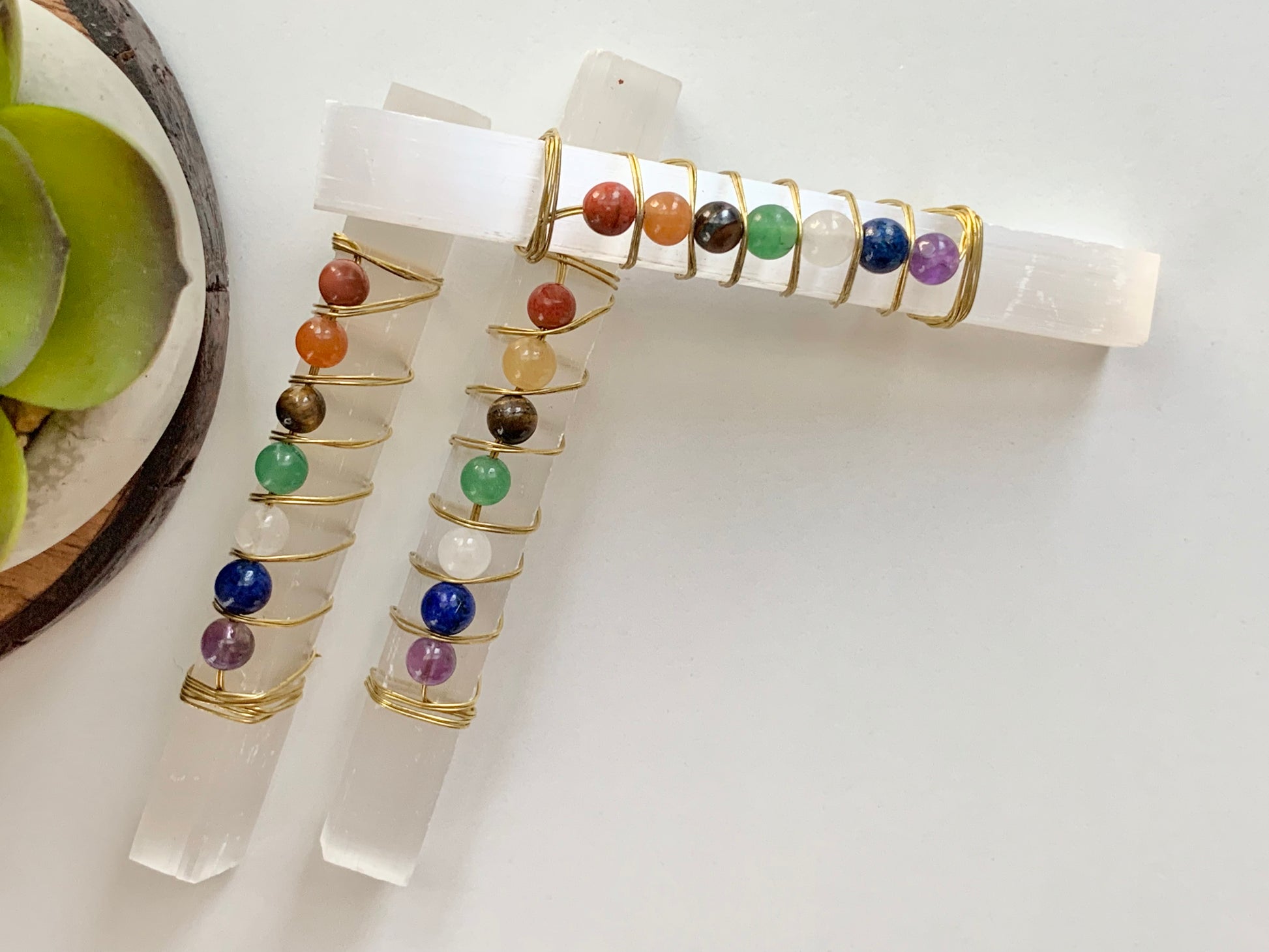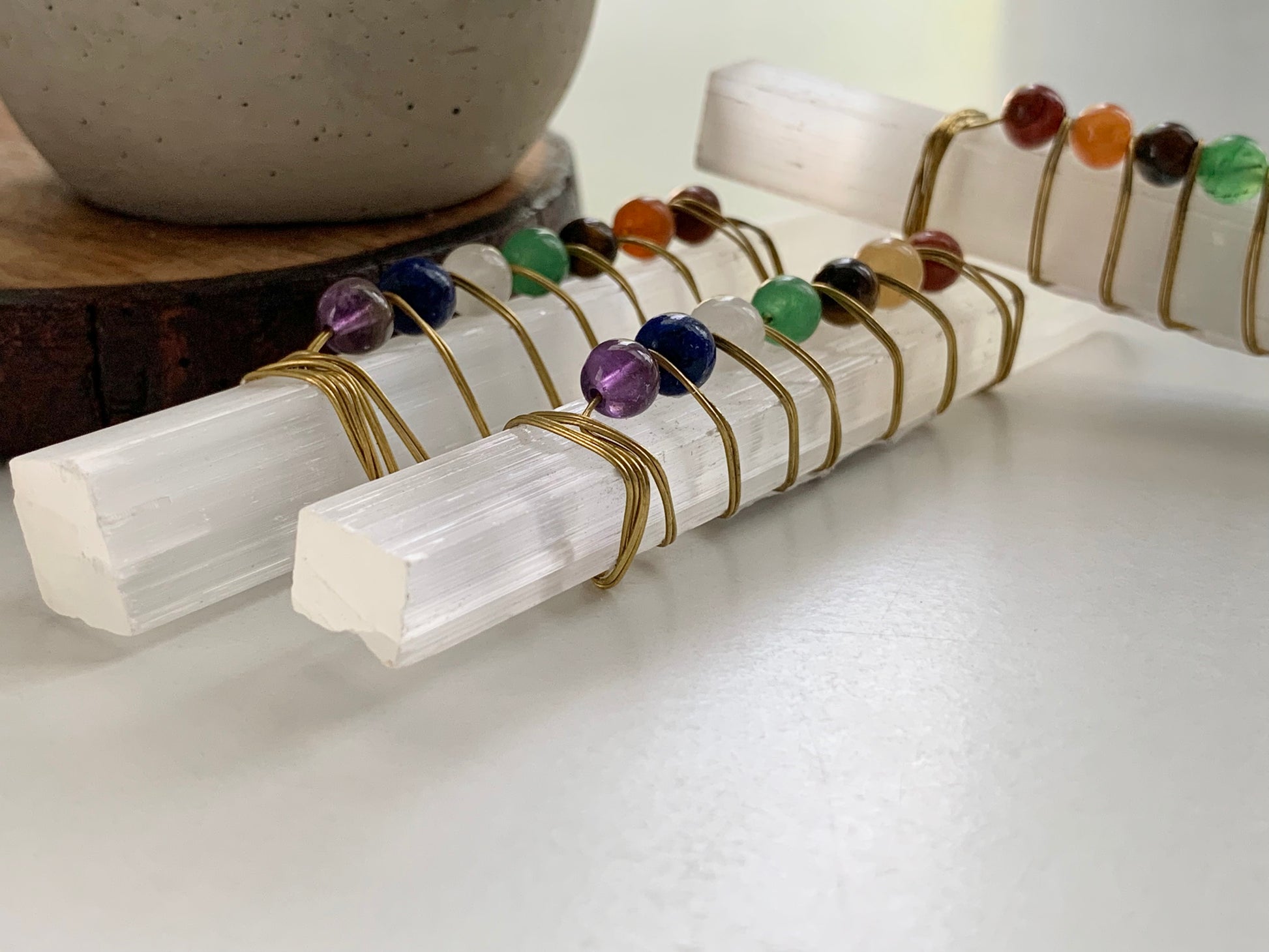 Align your self with these marvelous satin spar sticks wrapped with crystal beads. Each seven of the stones picked for opening each chakra. The sphere would be a great tool during meditation, leave in a place where you find yourself getting ridden with thoughts and used to calm you, but also to used to shift your energy.