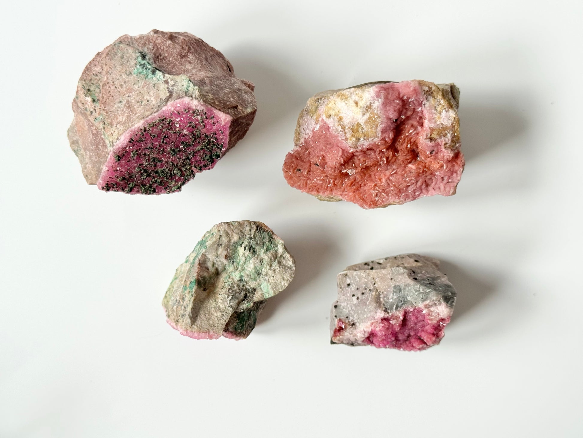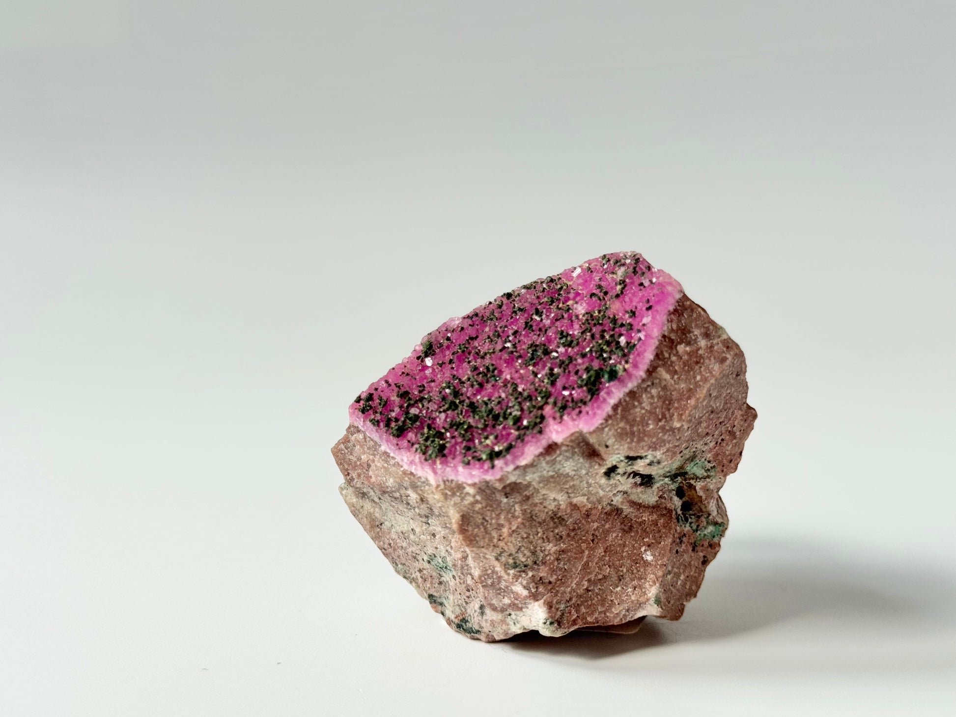 Cobaltoan Calcite, also known as Aphrodite Stone, is a rare form of calcite colored pink by cobalt. It is typically found as small druzy clusters but can also be cut and polished in some European locations. First discovered in Tuscany, Italy, notable deposits are now found in regions like the Congo, Morocco, Australia, and parts of Europe. This elegant mineral is valued for its delicate hue and limited availability.