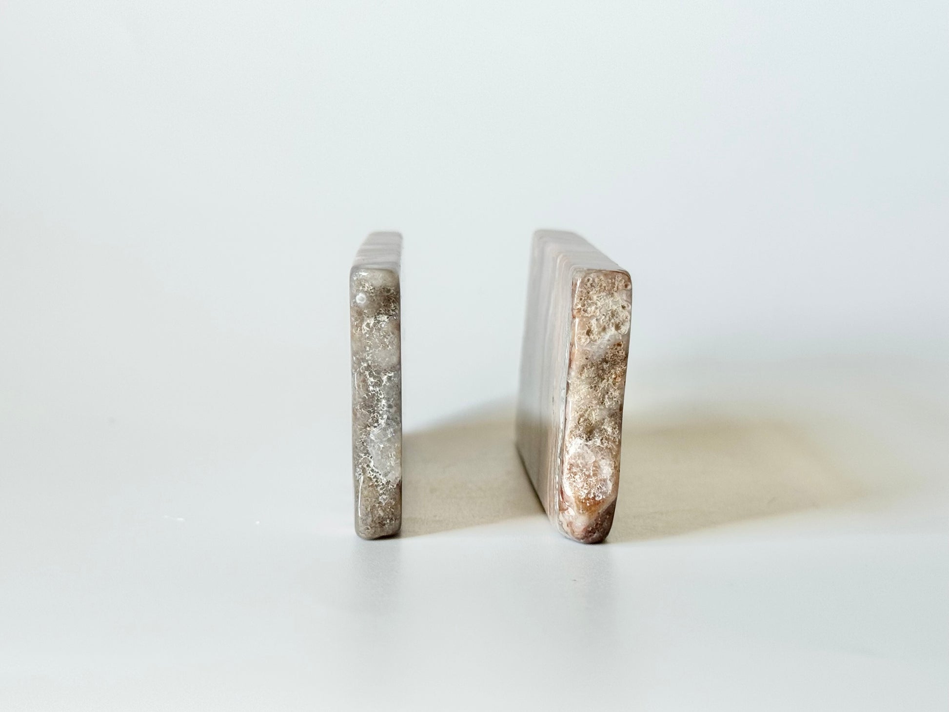 Elevate your collection with our stunning Agate Slab, a rectangular masterpiece that captures nature’s intricate design. When placed side by side, the beautifully formed bands align to reveal mesmerizing patterns that highlight the stone’s unique character. Perfect for adding elegance and natural charm to any space, this slab invites you to explore the fascinating layers and textures that only genuine agate can offer. Don’t miss the chance to own a piece that combines both artistic beauty and timeless appeal—transform your home or office with this captivating natural wonder.