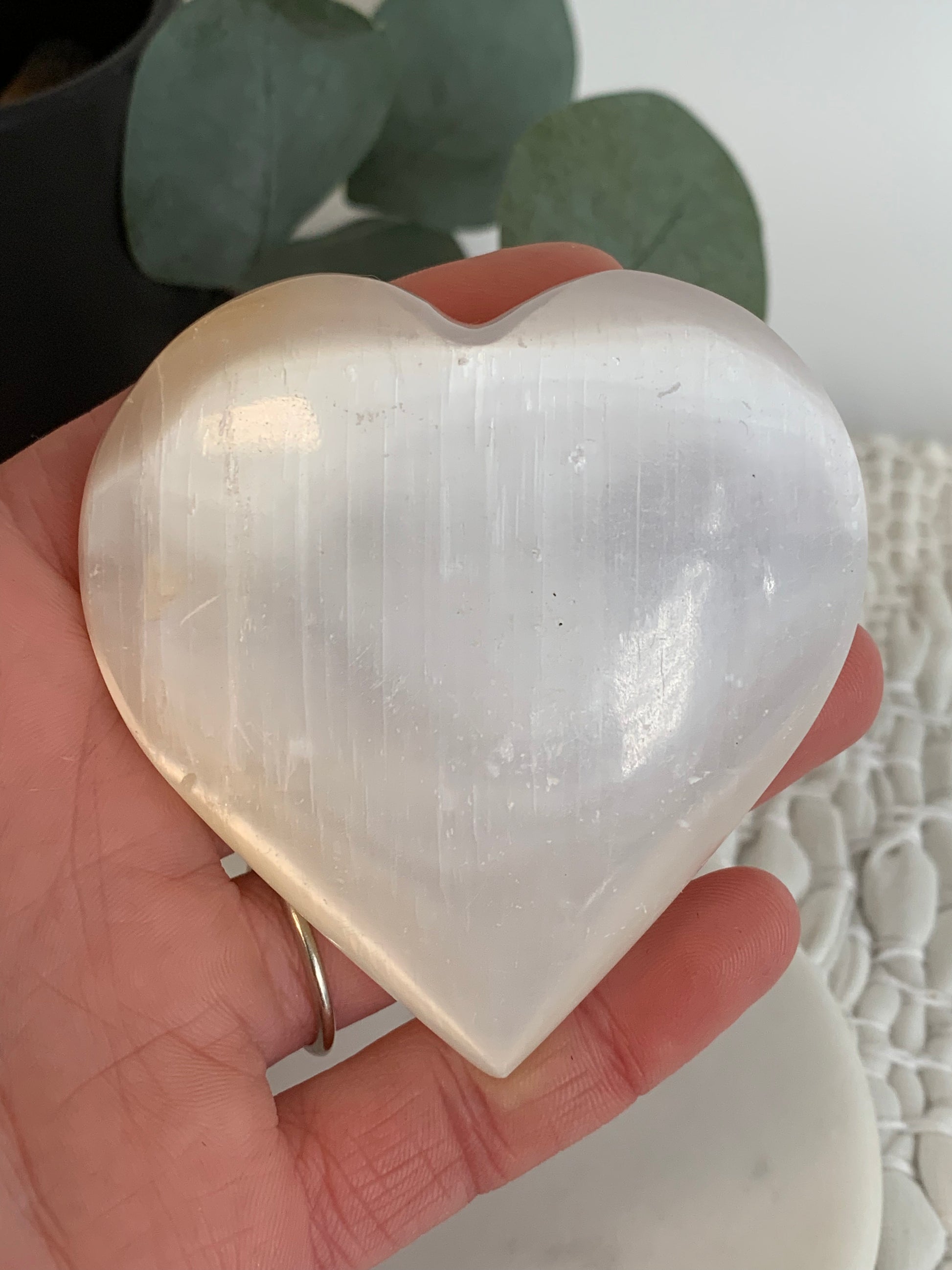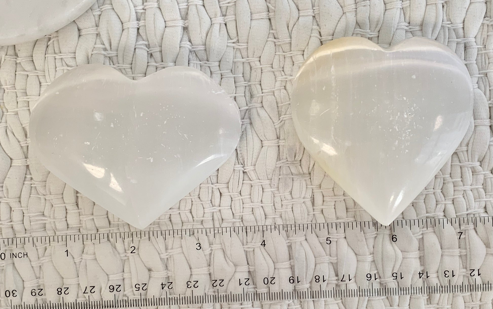 The detailing, silky white lines, cats eye effect, and uniqueness of the satin spar make these crystal heart carvings a great addition to anyones collection.