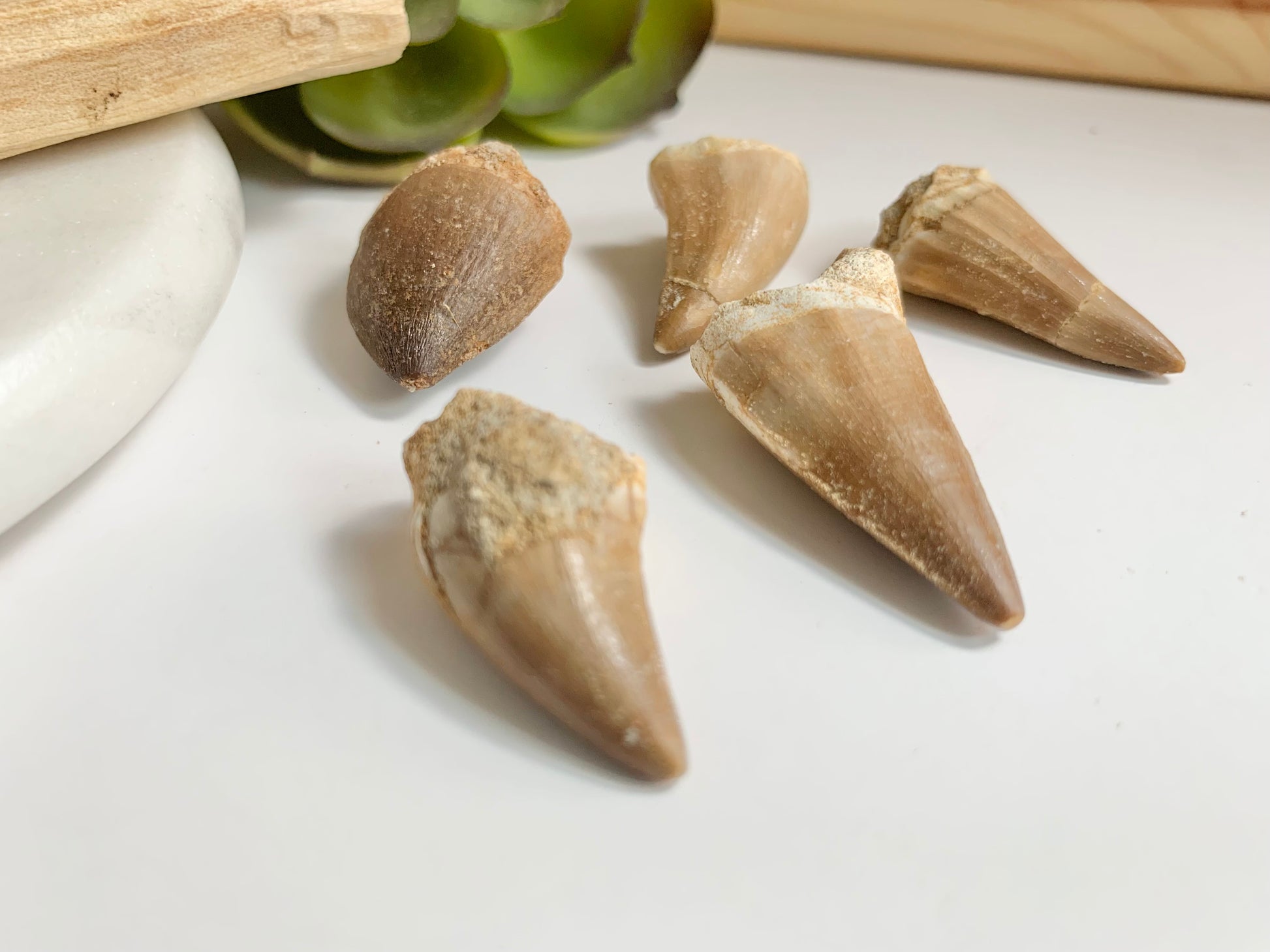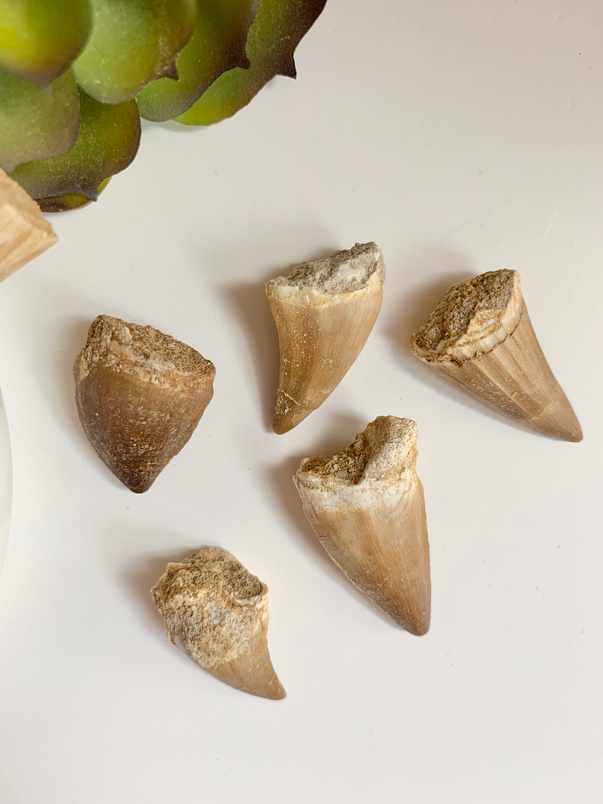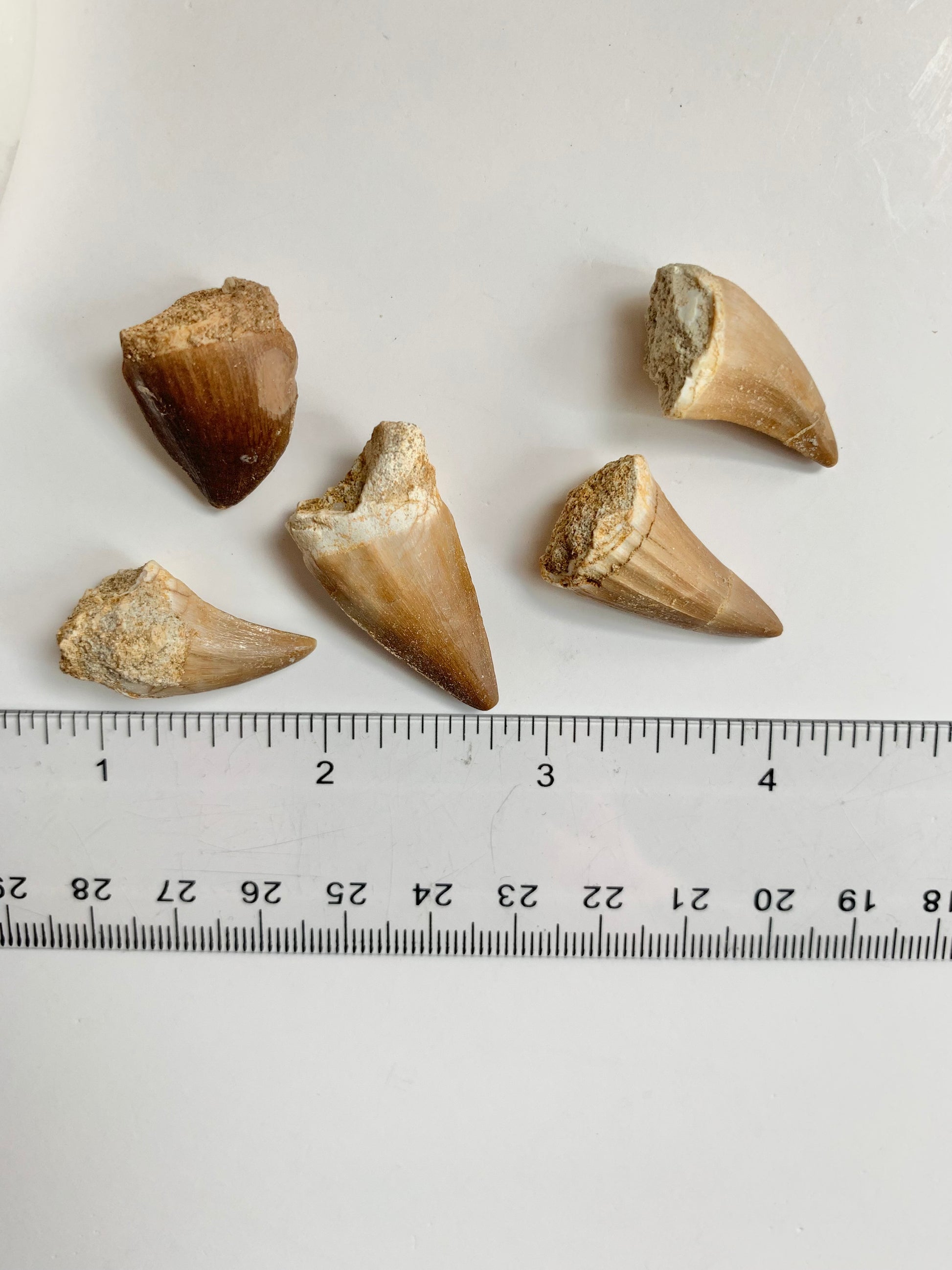 These are natural items, so please expect some variation in size, shape, texture, color, and pattern. These teeth range in size from 0.75 to 1.25 inches.