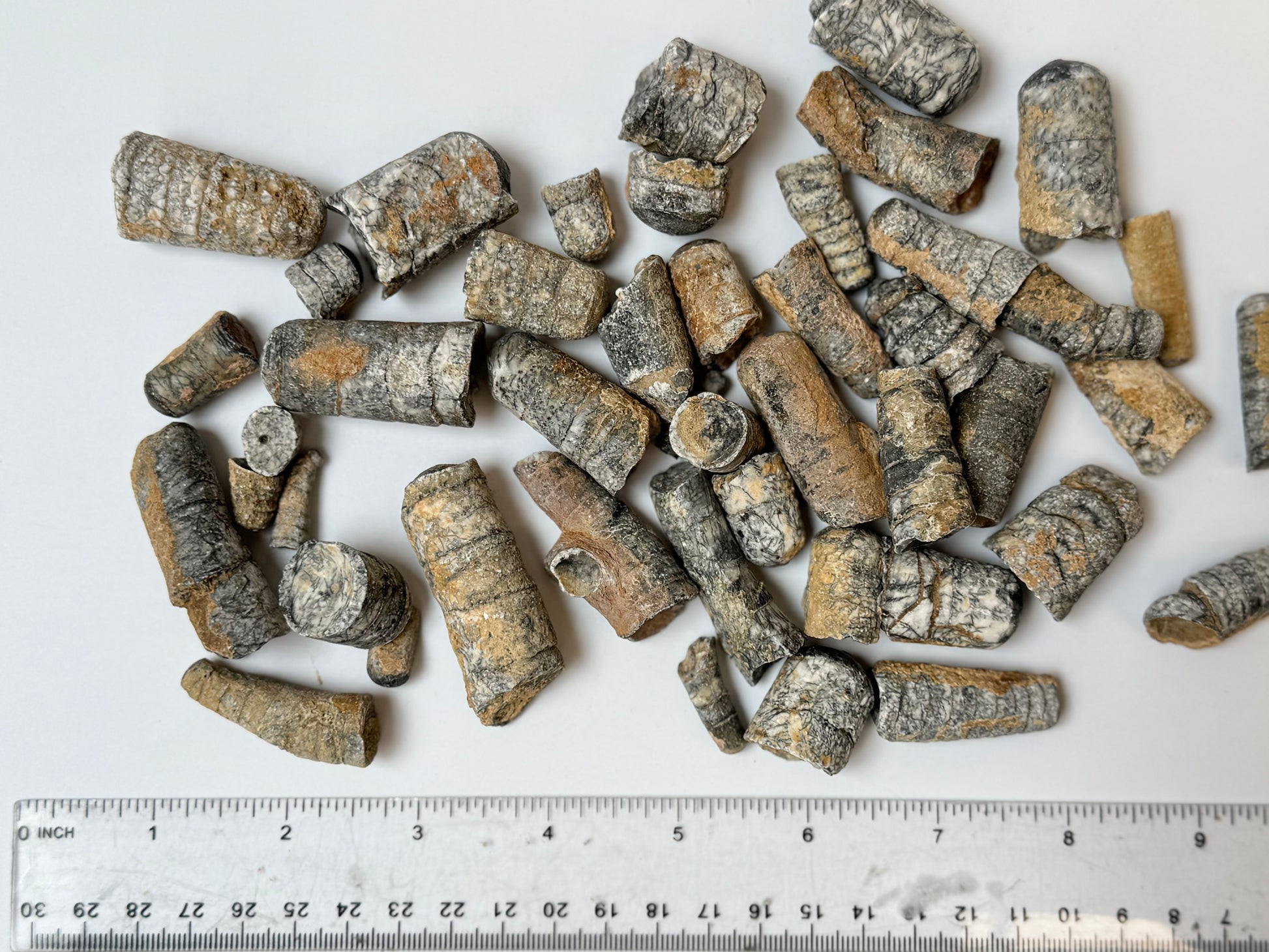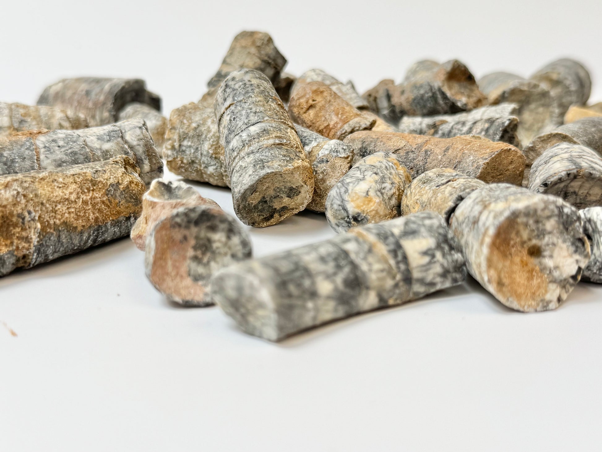 Orthoceras fossils are the ancient sea creatures with straight shells that zoomed through the oceans about 370 million years ago during the Upper Devonian period. These extinct cephalopods had tentacles for grabbing snacks and moved by shooting jets of water—pretty neat, right? Sourced from the Atlas Mountains in Morocco, this one-pound lot comes with fossils in all sorts of sizes for you to explore and enjoy.