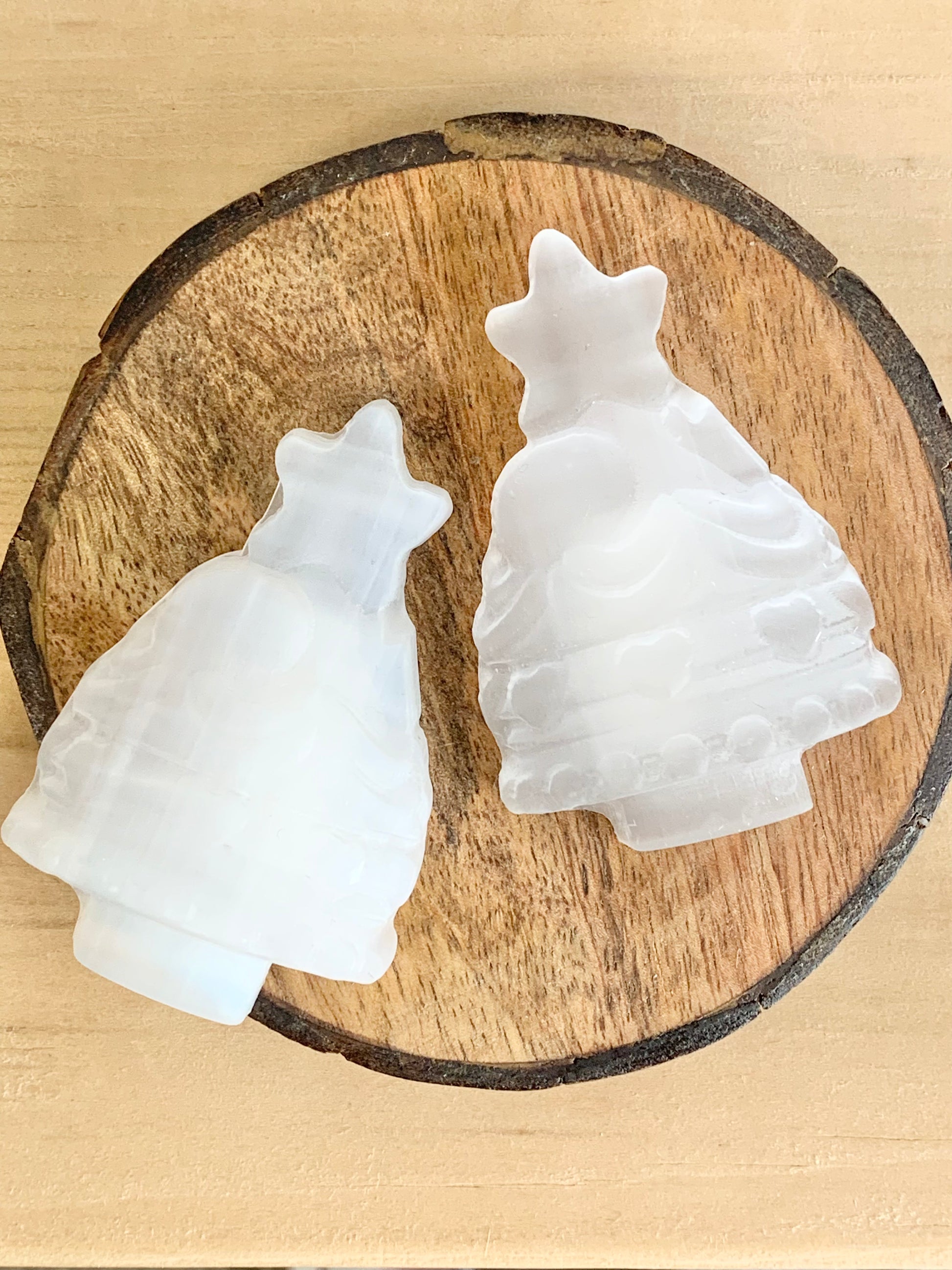 Satin Spar Christmas Tree Carving, crystal holiday tree