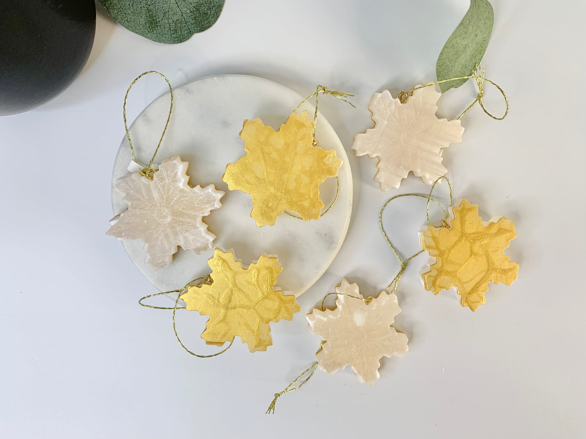 Satin spar snowflake holiday ornament for a tree, window, office or anywhere