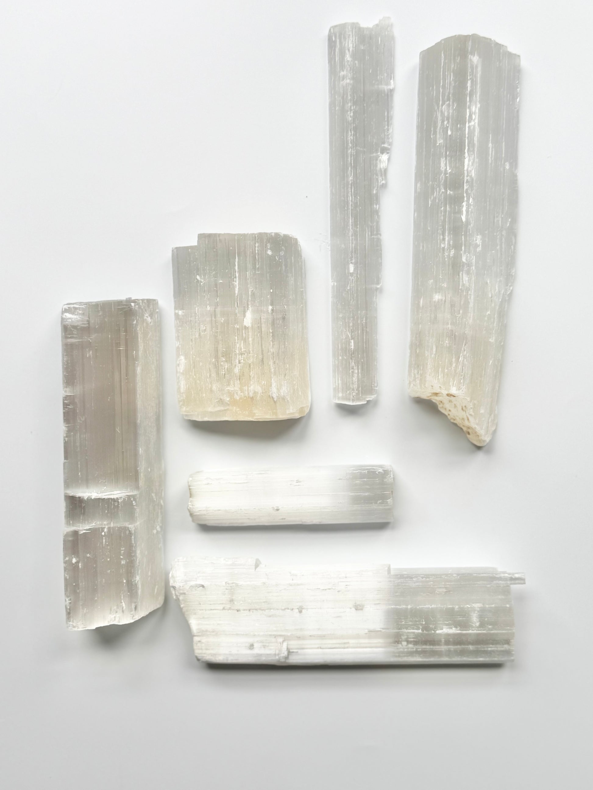 Satin Spar (a variety of gypsum often referred to as Selenite) is known for its bright, pearly finish and gently striated surface. Whether you're adding to a collection, styling a shelf, or gifting something special, these pieces bring a clean, timeless feel to any space.