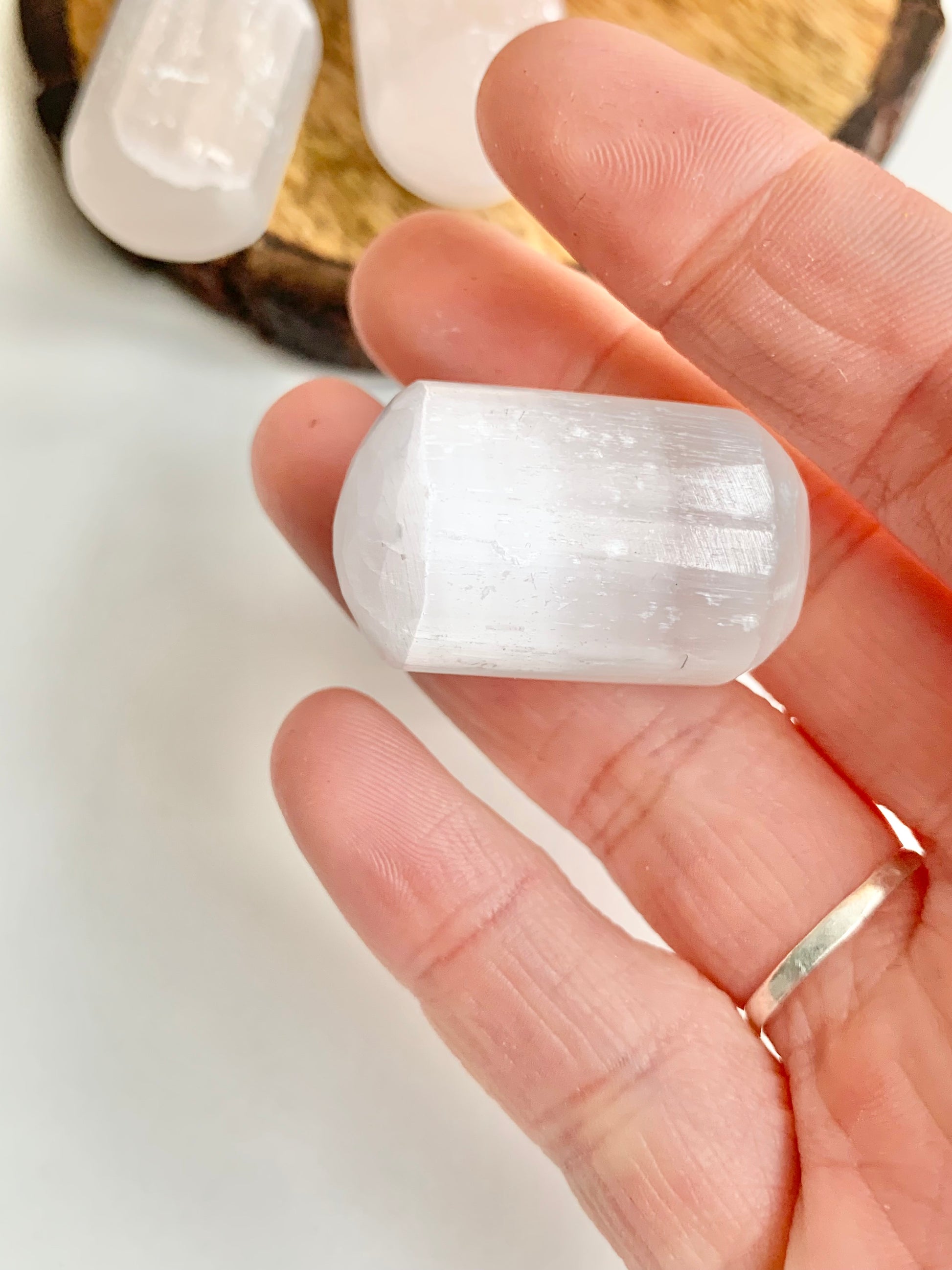The detailing, silky white lines, cats eye effect, and uniqueness of the satin spar make these tumbles a great addition to anyones collection.