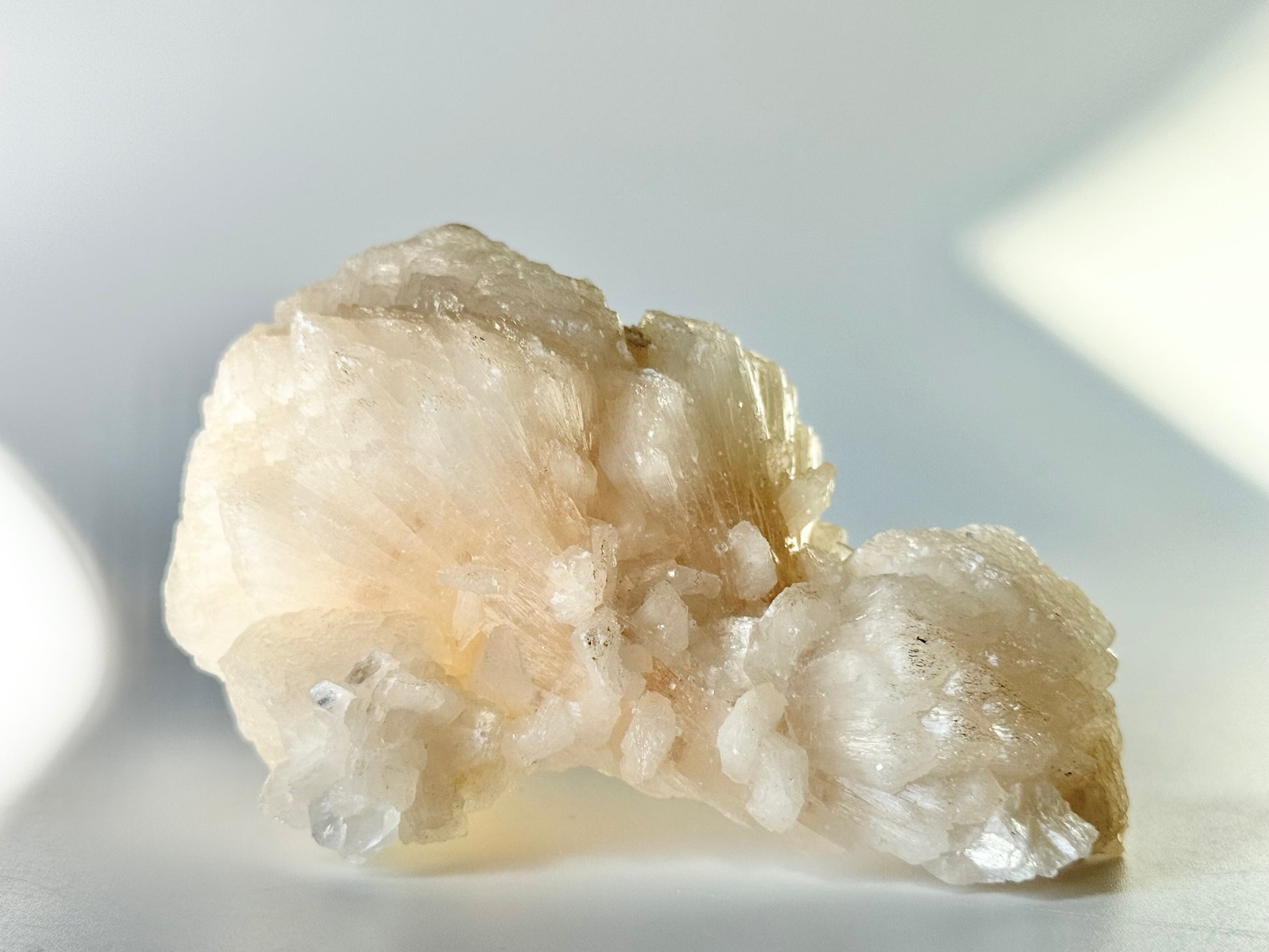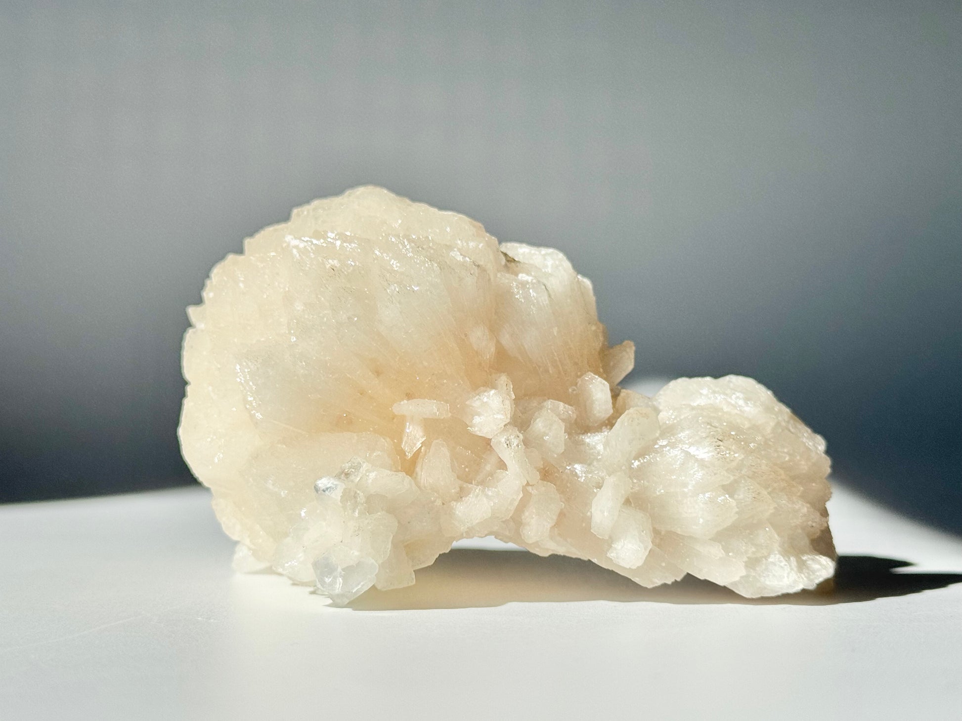 Stilbite, a zeolite mineral, is celebrated for its variety of hues and unique crystal shapes. It typically develops in cavities and veins found within basaltic rocks. Known for its soothing qualities, Stilbite is believed to enhance tranquility, mental clarity, and a sense of peace.